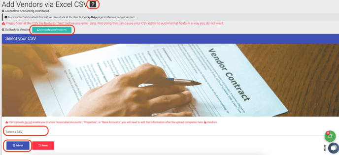 - Use the black question mark to view the validation rules and click "Download Template Vendor File".