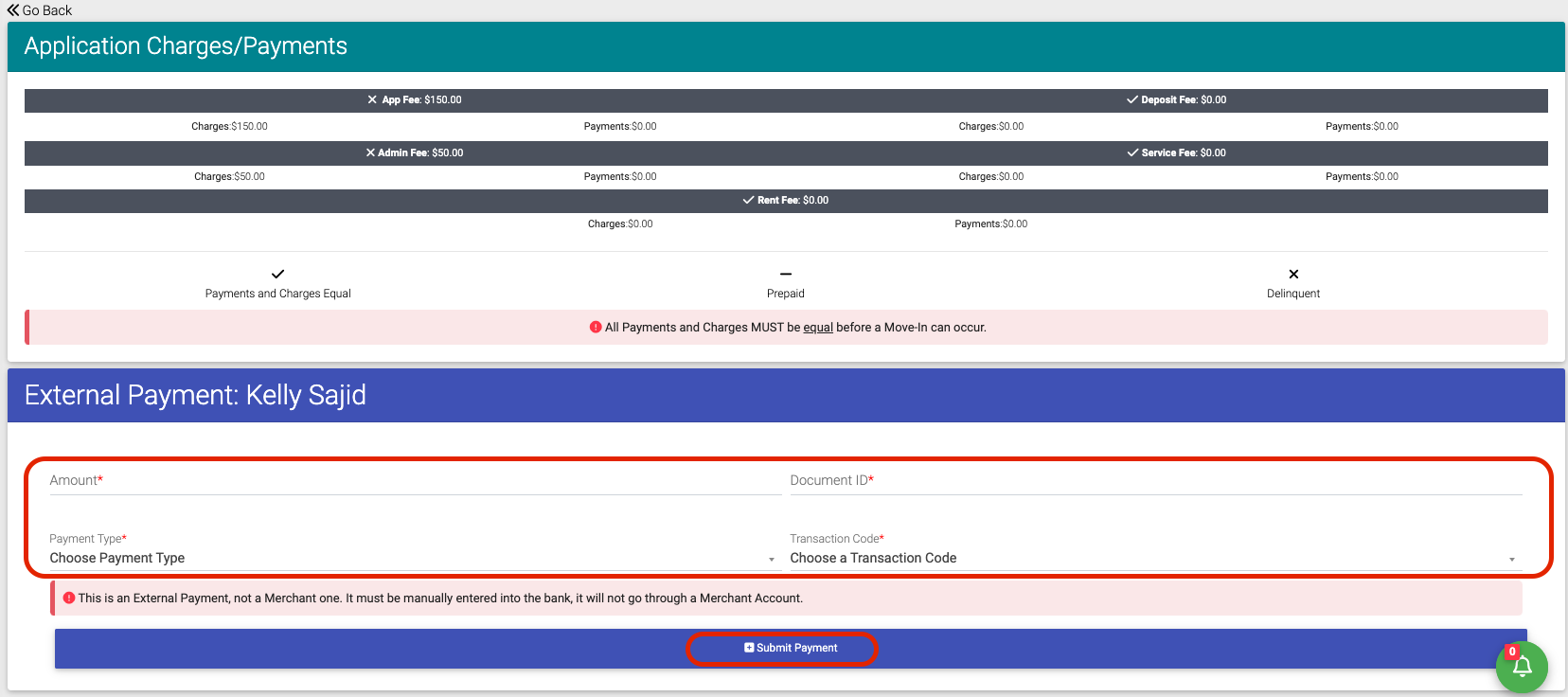 Step 5. Add External Payment Details, click Submit Payment.